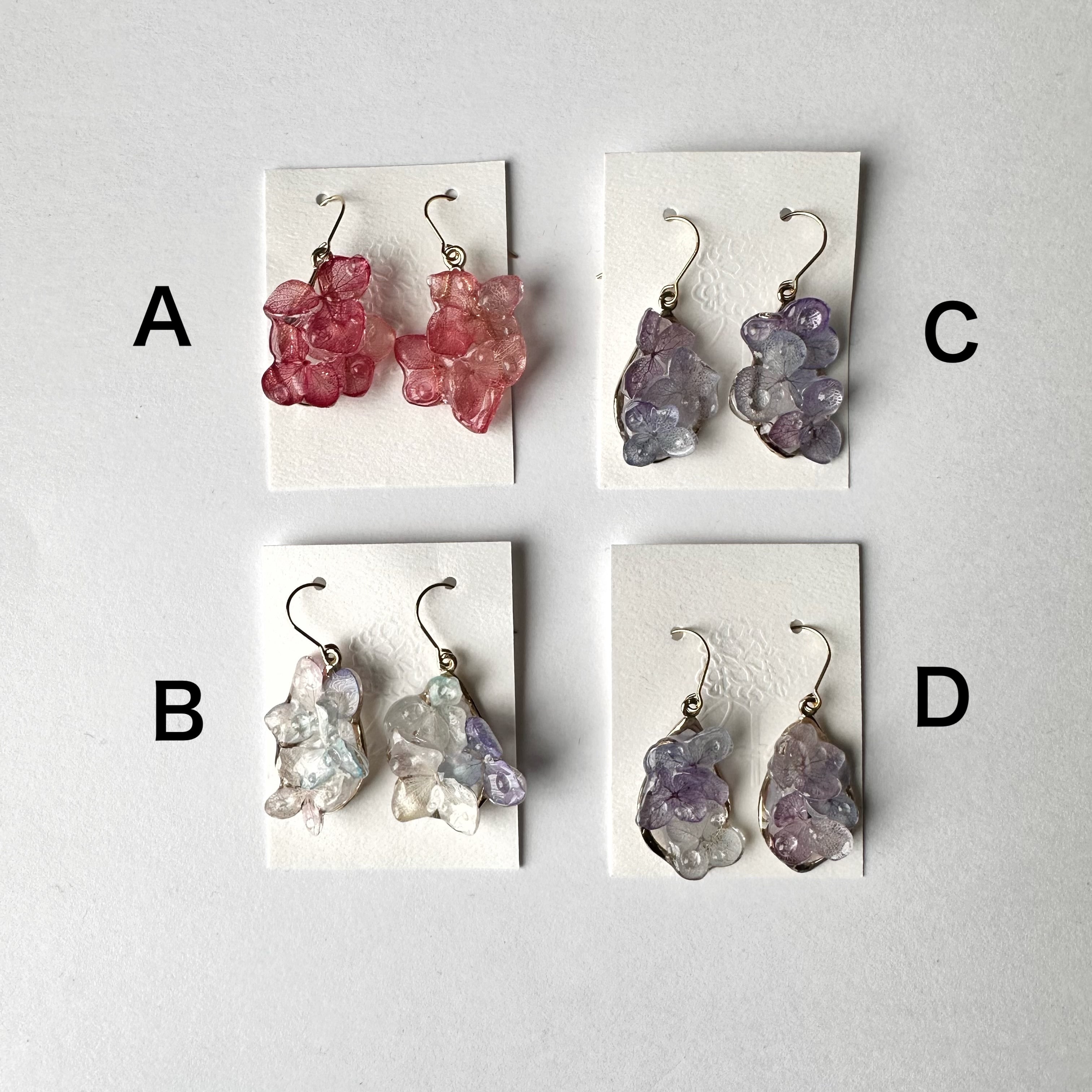 本物の紫陽花プリザーブドフラワー、レジン、丸カン(サージカルステンレス316)雫パーツ(ステンレスではない)