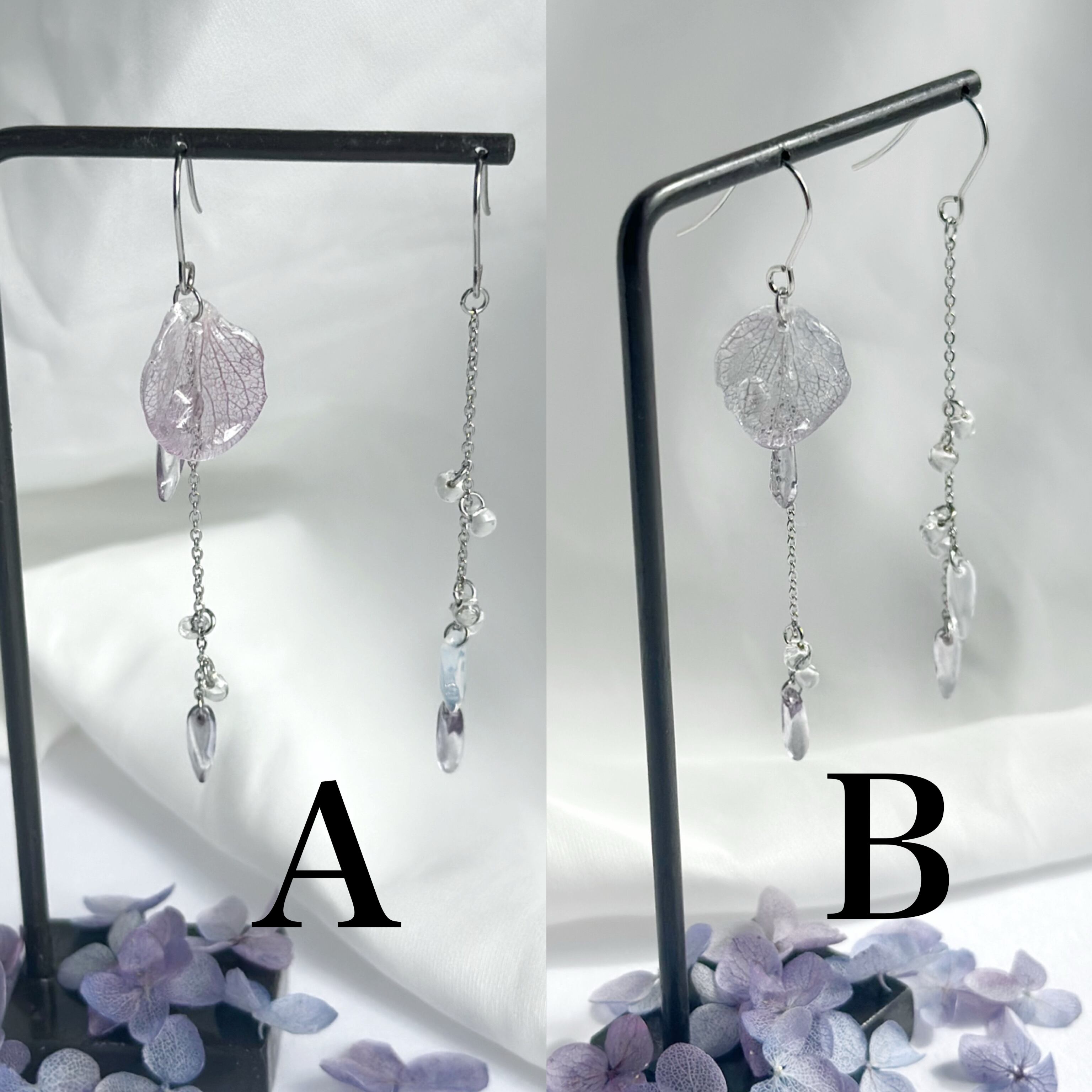 本物の紫陽花プリザーブドフラワー、レジン、丸カン(サージカルステンレス316)チェコビーズ、チェーン(サージカルステンレス304)