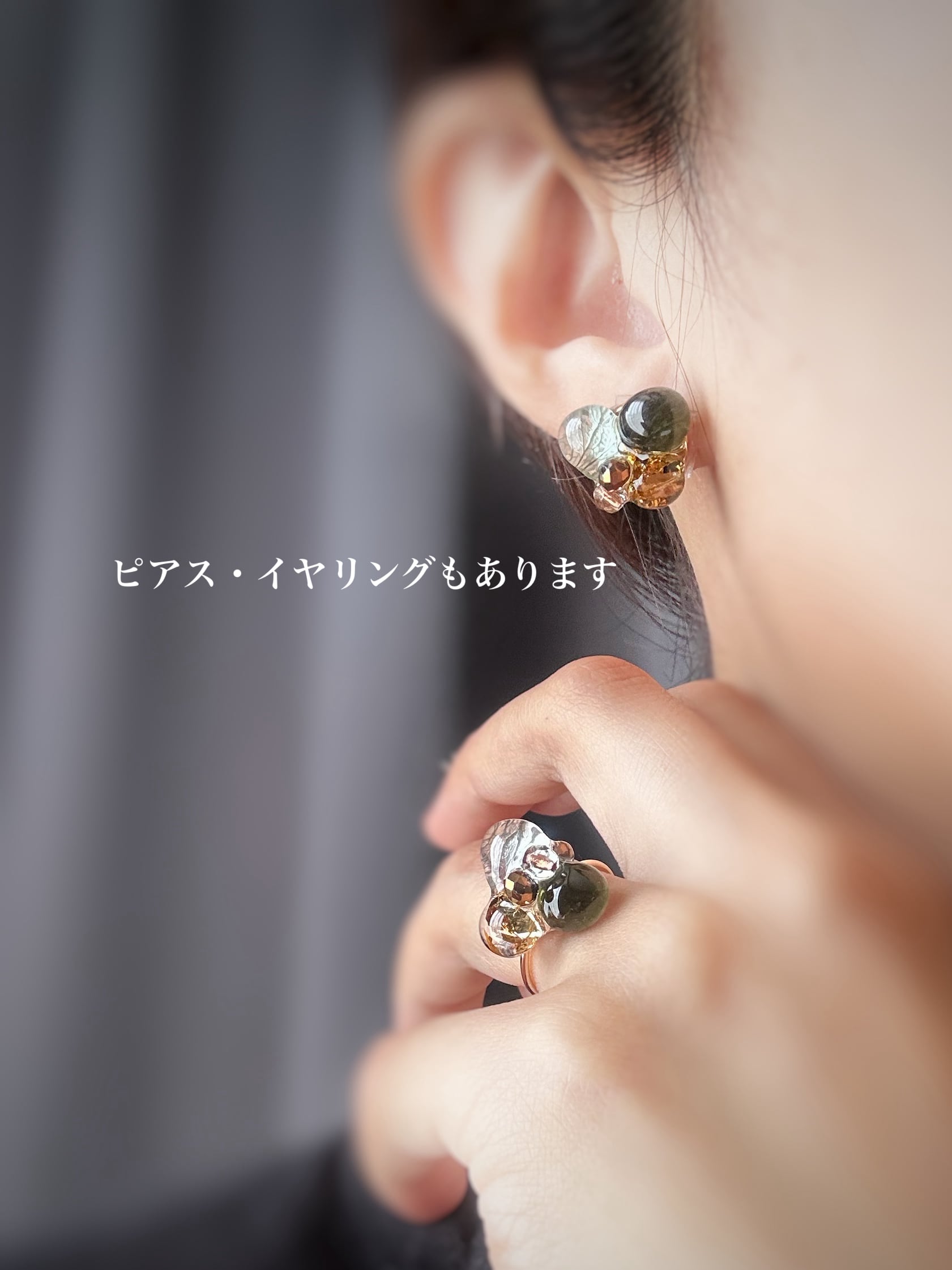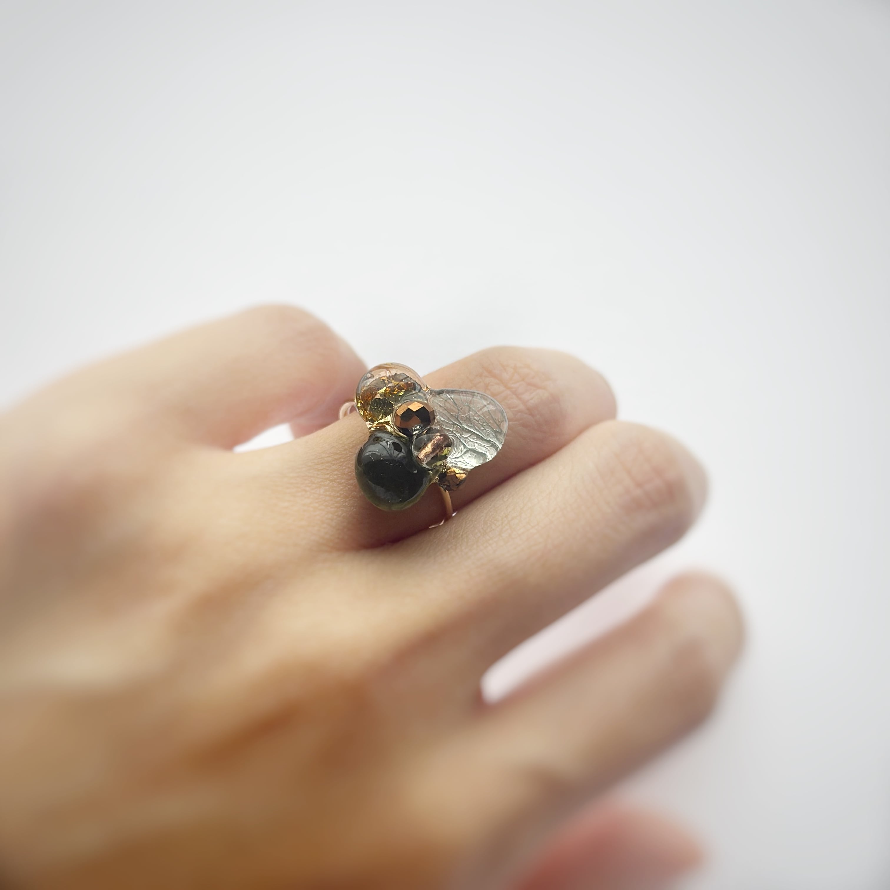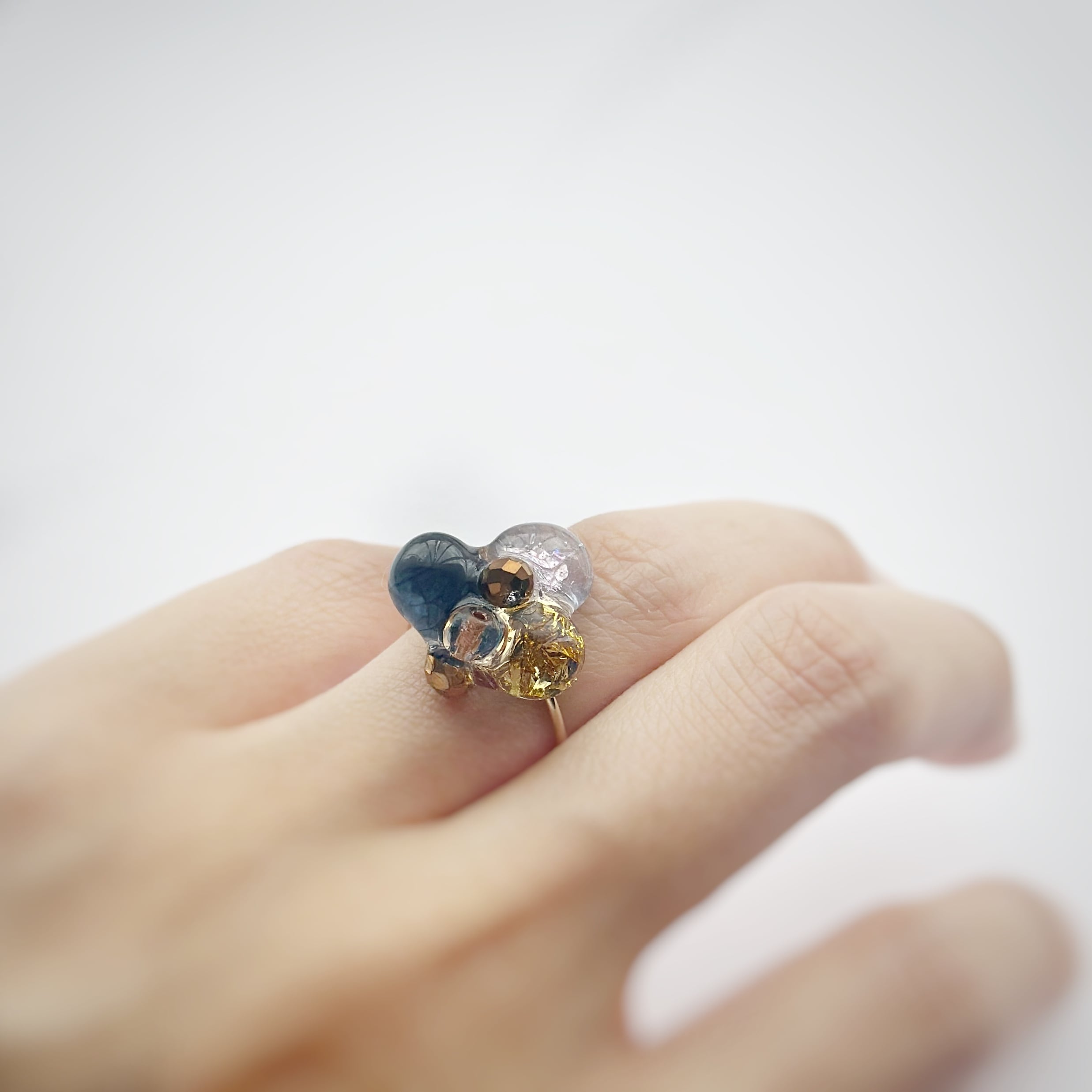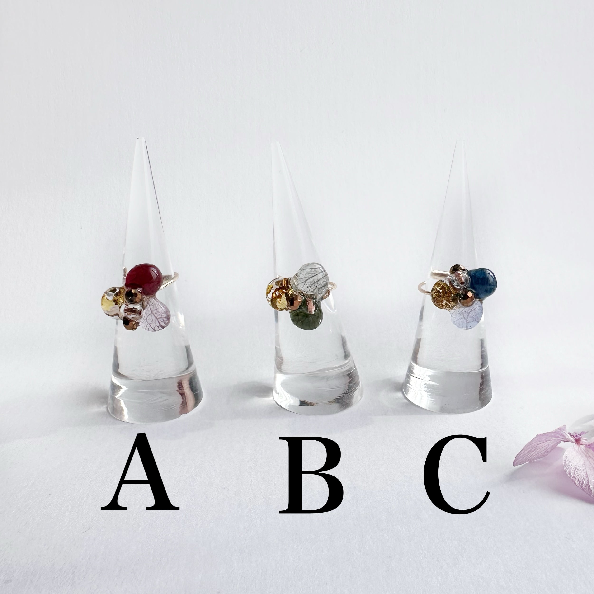 本物の紫陽花プリザーブドフラワー、レジン、チェコビーズ、指輪サージカルステンレス316(11号フリーサイズ)