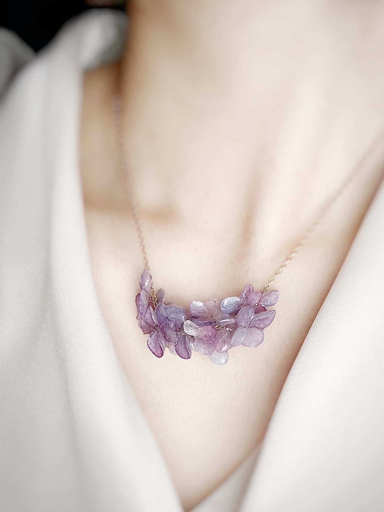 本物の紫陽花プリザーブドフラワー、レジン、丸カン(サージカルステンレス316)チェーン(サージカルステンレス304)