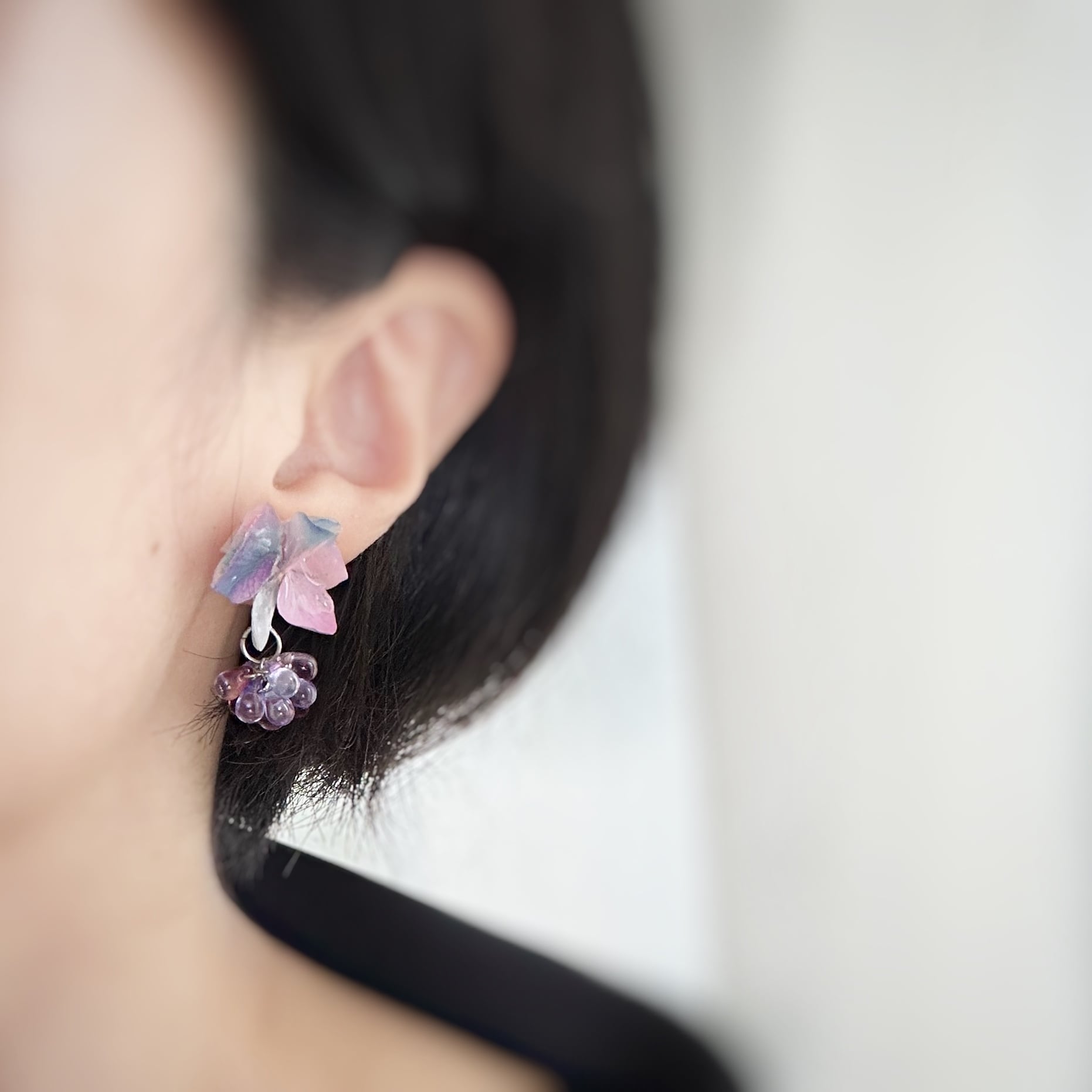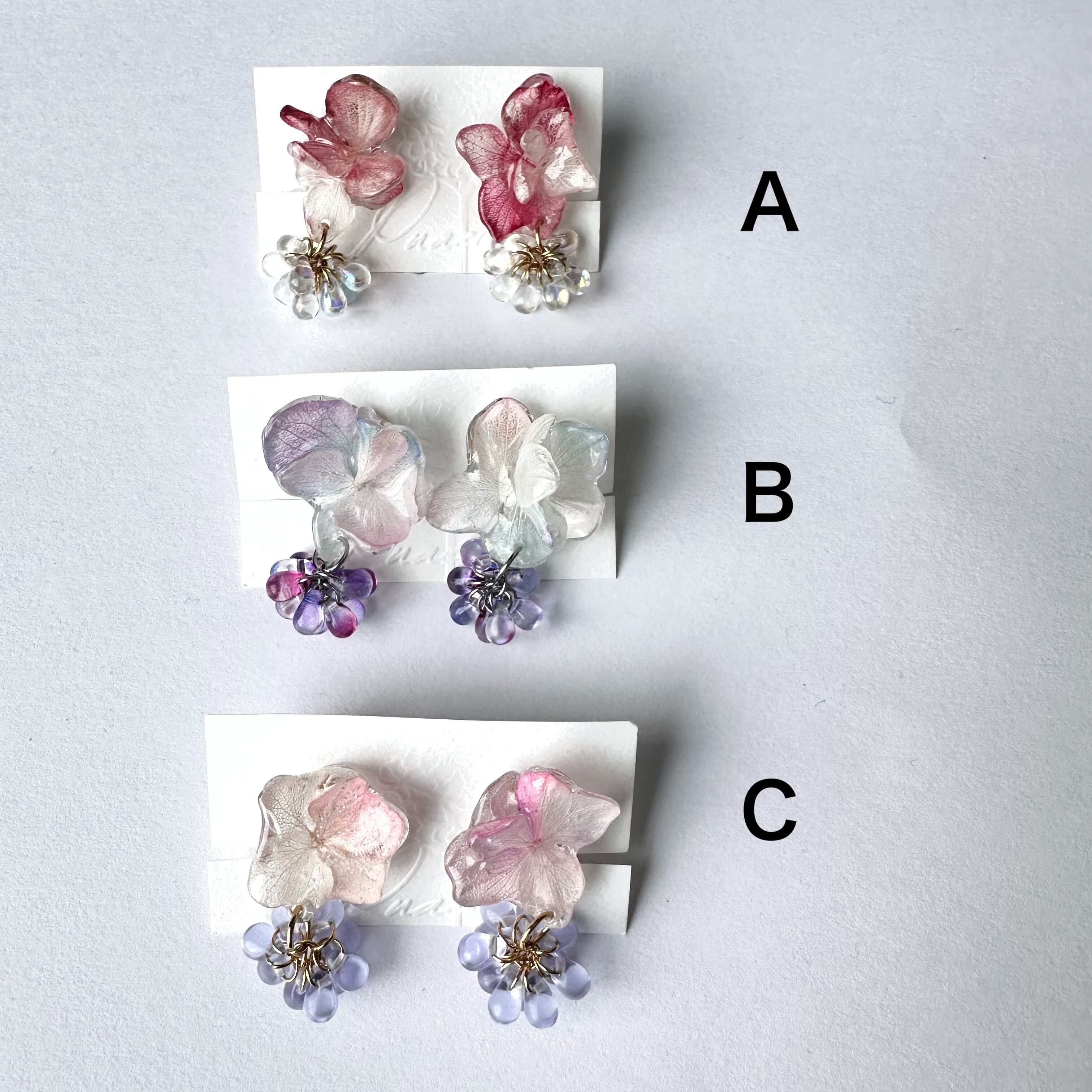 本物の紫陽花プリザーブドフラワー、レジン、丸カン(サージカルステンレス316)チェコビーズ